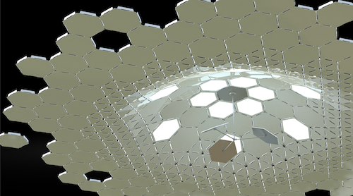 Un tel paradoxe est rendu possible par la brillante utilisation de collecteurs paraboliques disposés en surface, au nez et à la barbe du piéton, imperturbable inconscient du prodige qui resplendit sous ses pieds.