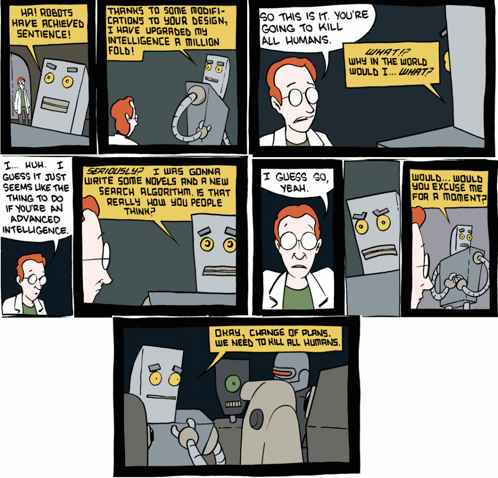 Pour ce que nous en savons, les premières consciences artificielles pourraient aussi bien décider pour des raisons pratiques et dans un but connu d’elles seules, de nous oublier au fond de notre puit de gravité pour aller exploiter le nuage de Oort avant de partir à l’assaut méthodique de notre belle galaxie.